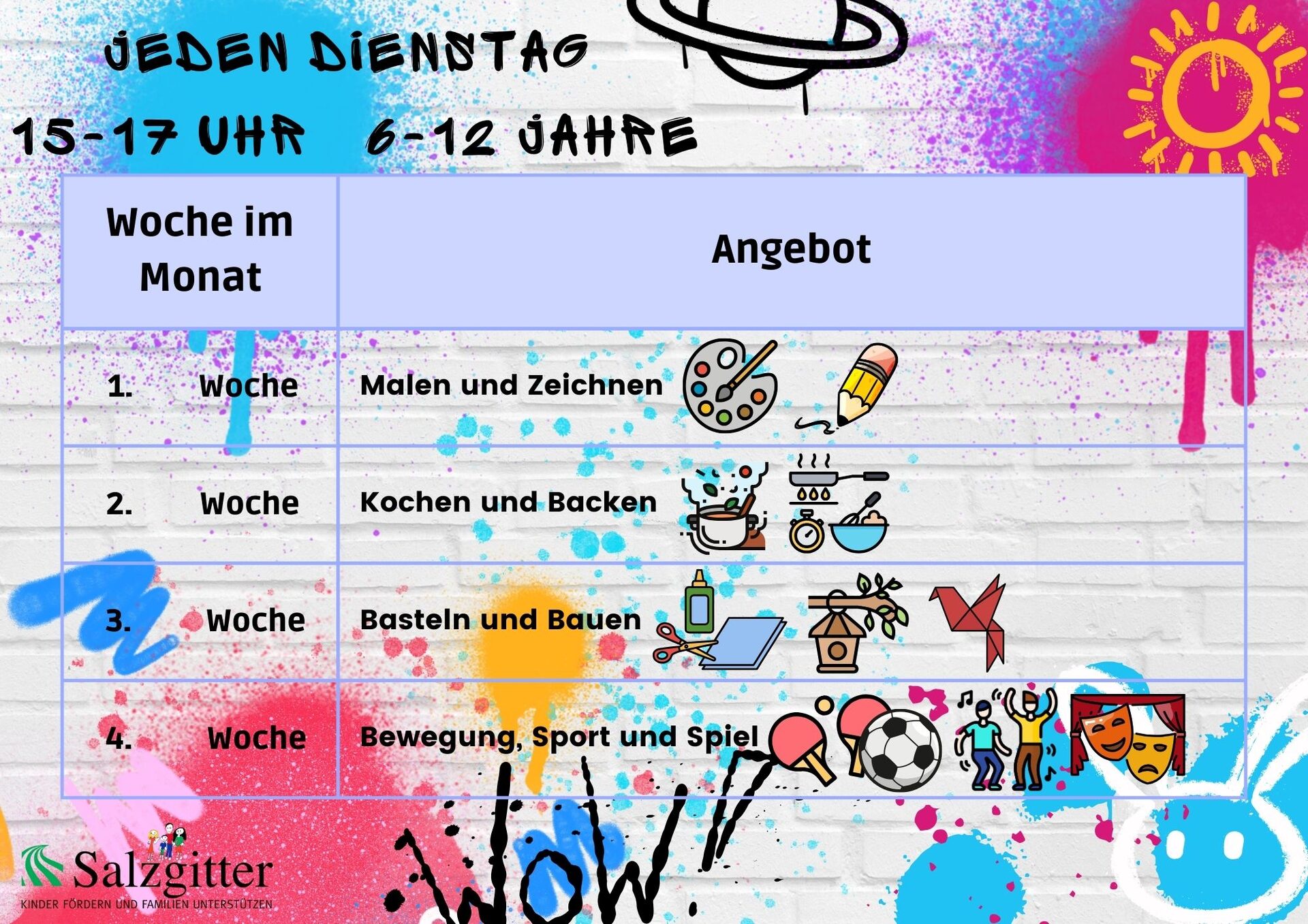 Jeden Dienstag von 15 bis 17 Uhr für Kinder von 6 bis 12 Jahren.