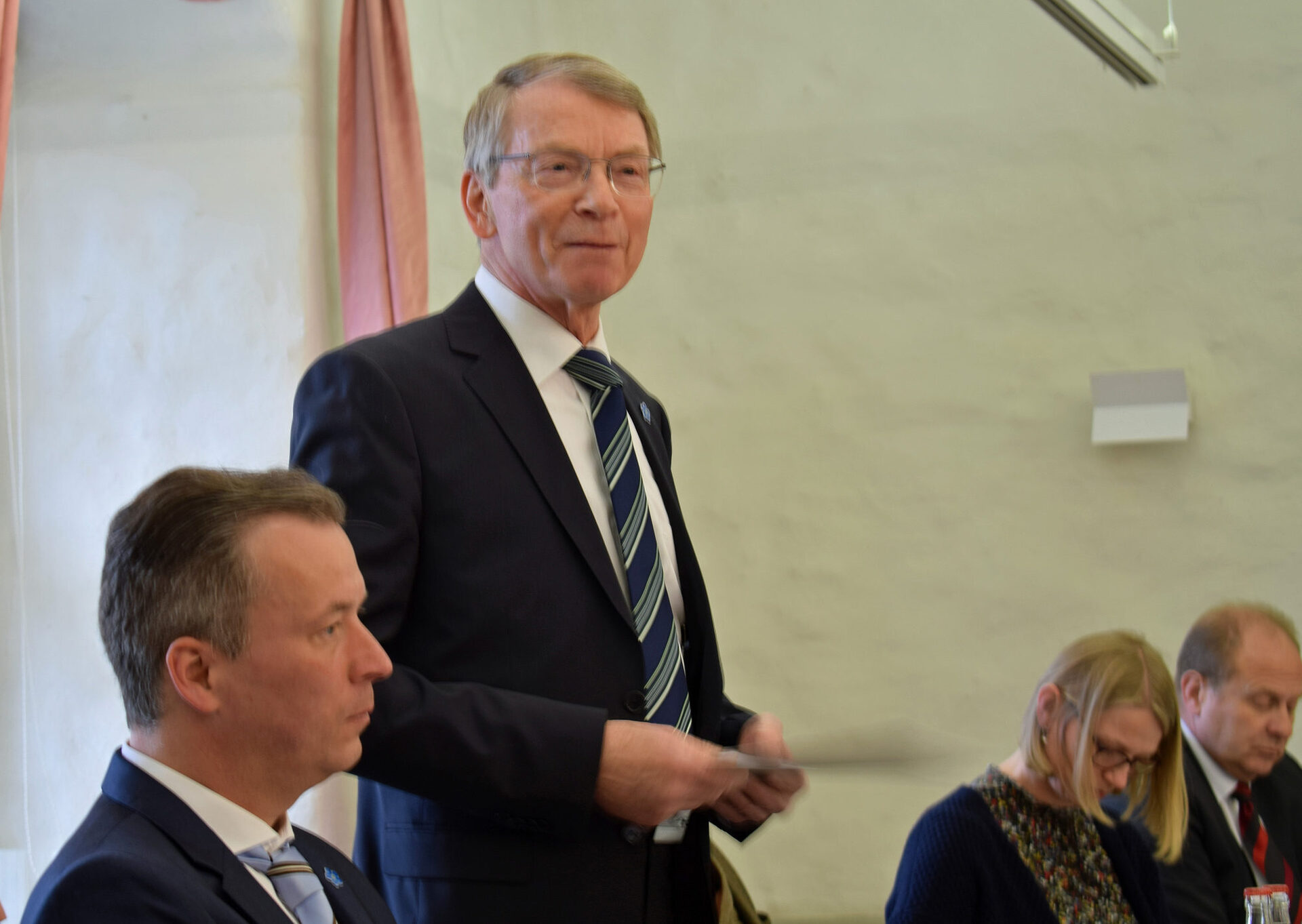 Oberbürgermeister Frank Klingebiel, der zugleich Vorsitzender des Kreisverbandes Salzgitter ist, begrüßte die anwesenden Vertreterinnen und Vertreter und dankte für deren langjähriges Engagement. Weiterhin sagte er: “Wir brauchen den Volksbund für die Kriegsgräberfürsorge und die Jugendarbeit. Wir arbeiten im Volksbund für den Frieden und wollen viele junge Menschen zu dieser Arbeit motivieren.“