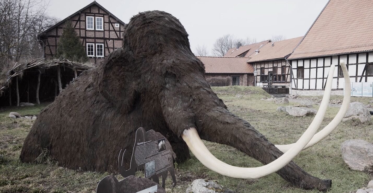 Zu finden sind diese farbigen Tierfresken an zwei Mehrfamilienhäusern aus den 1950er-Jahren im Pappelweg und in der Reppnerschen Straße von Salzgitter-Lebenstedt. Mammut, Fellnashorn und Wildpferd sind zu sehen.