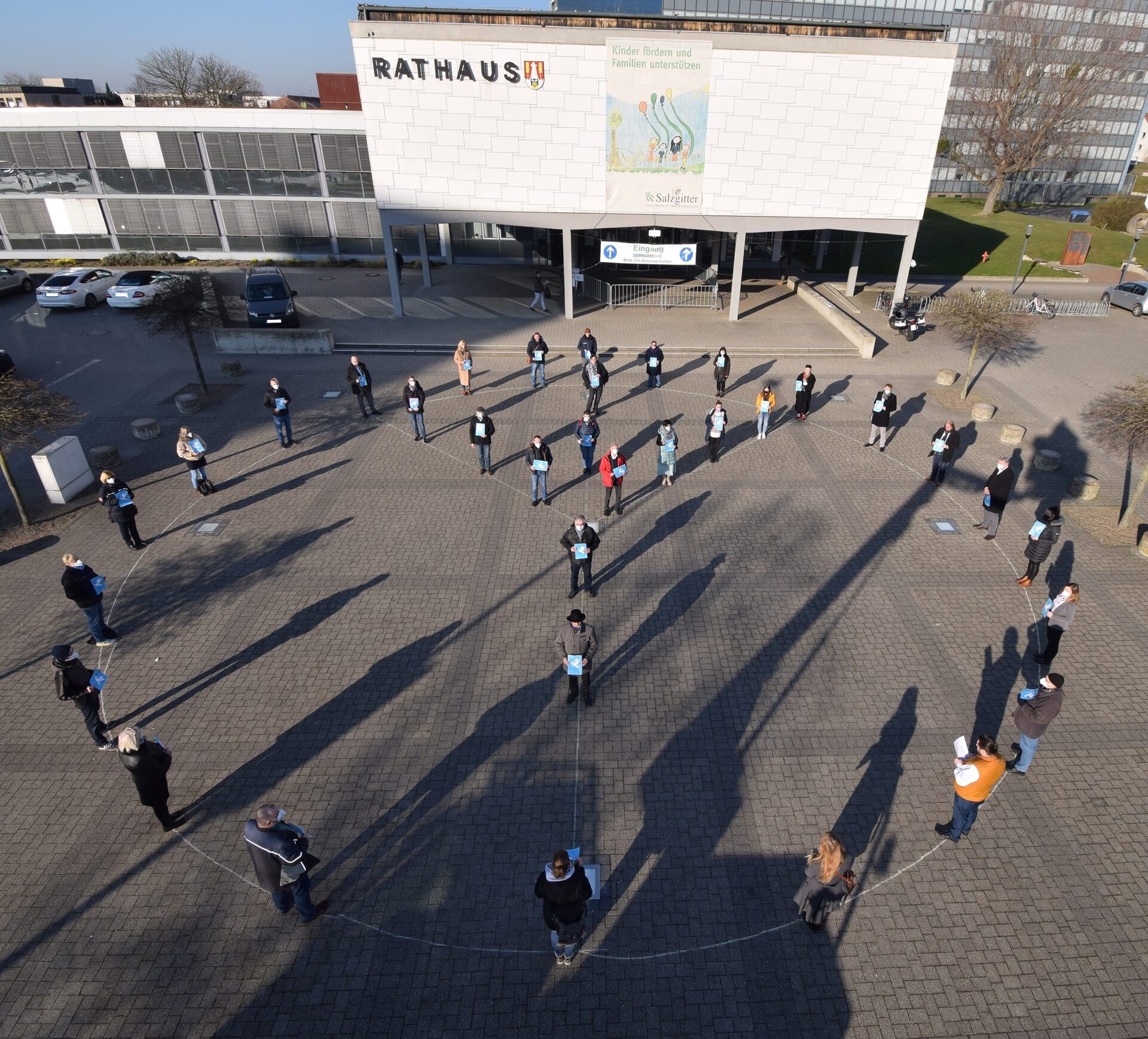 Diese Aktion fand auf Initiative des Gesamtpersonalrates der Stadt Salzgitter statt und wurde ausdrücklich von Oberbürgermeister Frank Klingebiel und dem Kreis der Verwaltungsführung unterstützt. Es sollte damit ein deutliches Zeichen gegen Krieg, Gewalt und Vertreibung gesetzt werden.