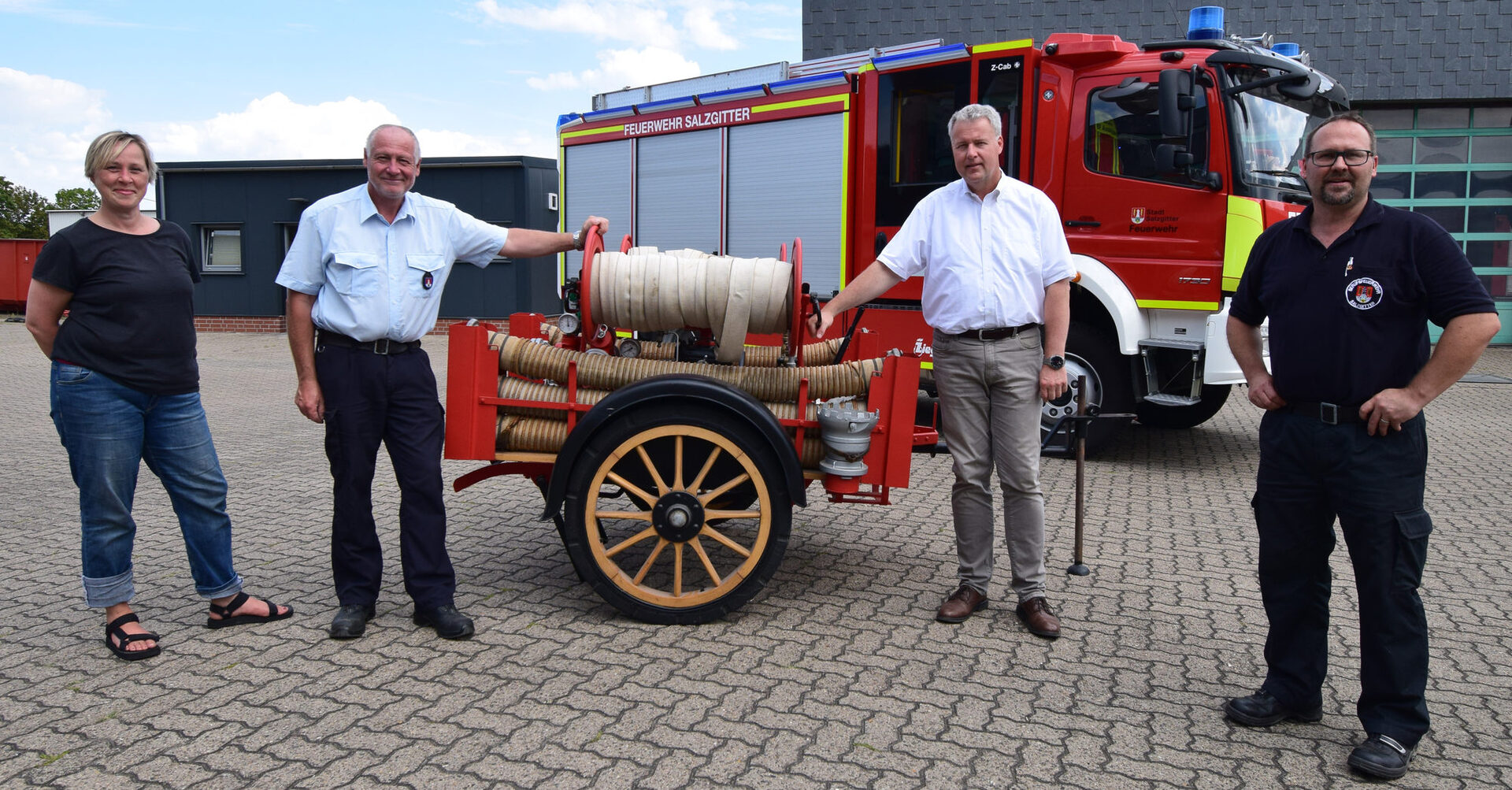 Zunächst muss Platz für die Bauarbeiten geschaffen werden, dabei haben Mitarbeiterinnen und Mitarbeiter der Wehr einige Feuerwehr-Objekte aus den 1950er bis 70er Jahren gefunden, die sie dem Städtischen Museum Schloss Salder für seine Sammlung angeboten haben.