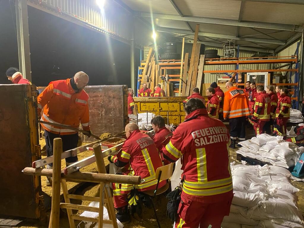 Bis zum 26.12.23 18:00 Uhr hatten die Einsatzkräfte 40 unwetterbedingte Einsatzstellen im Stadtgebiet abzuarbeiten. Auch fuhren Logistikkomponenten der Feuerwehr Salzgitter nach Wolfenbüttel um die dortigen Einsatzkräfte zu unterstützen. Weiterhin wurde der Nachschub an leeren Sandsäcken selbst am 24.12. durch die Feuerwehr Salzgitter sichergestellt. Neben der eigenen Nachbeschaffung wurden die Nachbestellungen für den Landkreis Goslar und die Stadt Wolfenbüttel beim Händler gleich mitgenommen und den Nachbarn zugeführt.