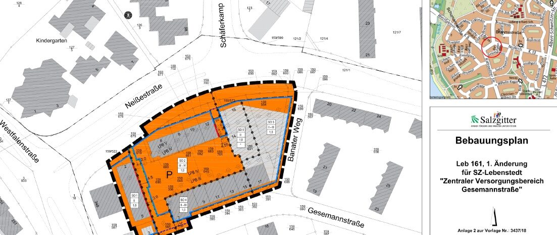 Damit kann das Nahversorgungszentrum Seeviertel (zentraler Versorgungsbereich Gesemannstraße) zwischen der Gesemannstraße und der Neißestraße durch den Neubau eines viergeschossigen Wohn- und Geschäftshauses mit Staffelgeschoss und einer Tiefgarage aufgewertet werden.